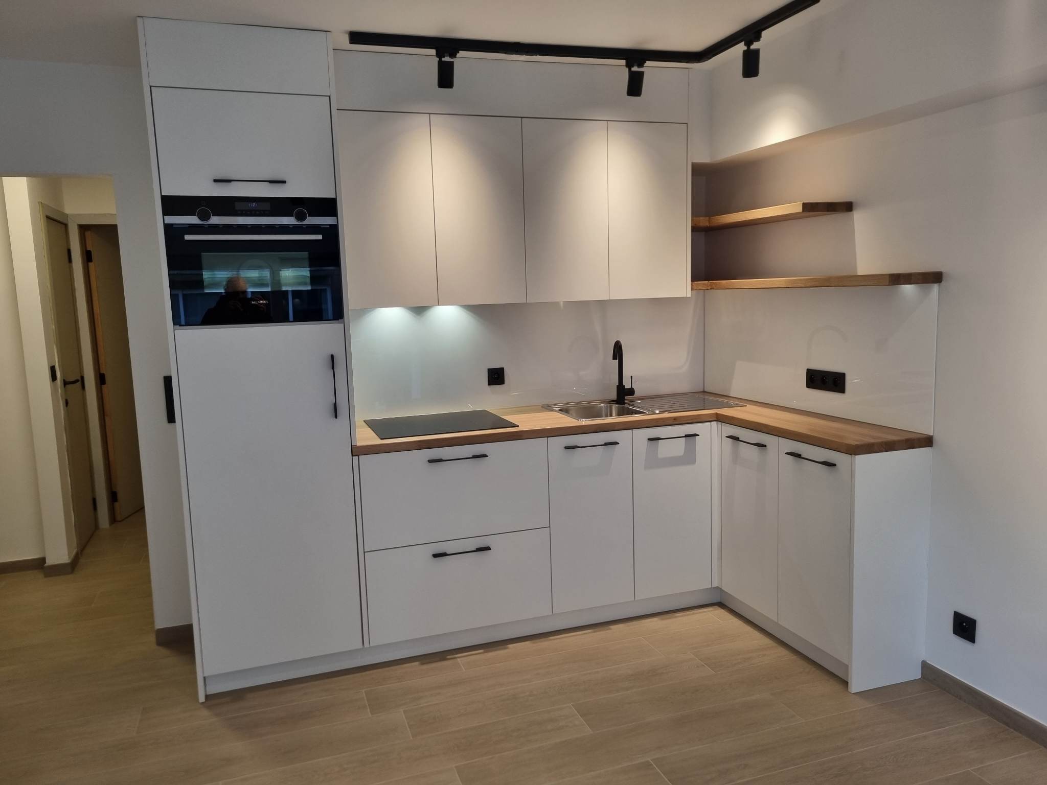 De uitdaging bestond erin om een moderne keuken en een televisiemeubel te ontwerpen die functioneel zijn, maar tegelijk naadloos opgaan in het open leefconcept van het appartement. De beperkte ruimte vroeg om een slimme indeling, waarbij esthetiek, comfort en opbergruimte in balans bleven.
